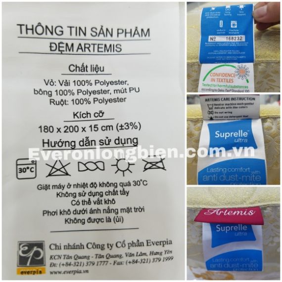 Khác với đệm bông ép Everon vỏ gấm, đệm Artemis chỉ có hai độ dày là 15cm và 18cm. Vì là sản phẩm được định vị dành cho thị trường cao cấp nên mức giá của đệm này dao động từ 7 triệu đồng - 13 triệu đồng tùy thuộc vào kích thước mà quý khách hàng lựa chọn.